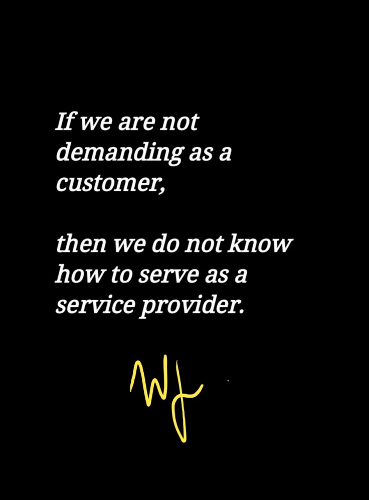 Demanding people are often great service providers …..as their expectations are consistent on both sides.