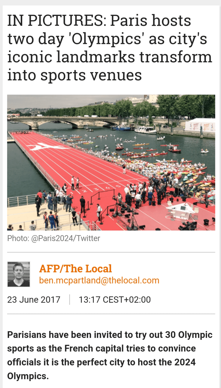 I happpend to be in Paris on the 2 days (23-24 June) where they had a “demonstration carnival” in their push to bid as host for the 2024 Olympic Games. Roads were closed, sites were quardonned off and naturally traffic was in total chaos.