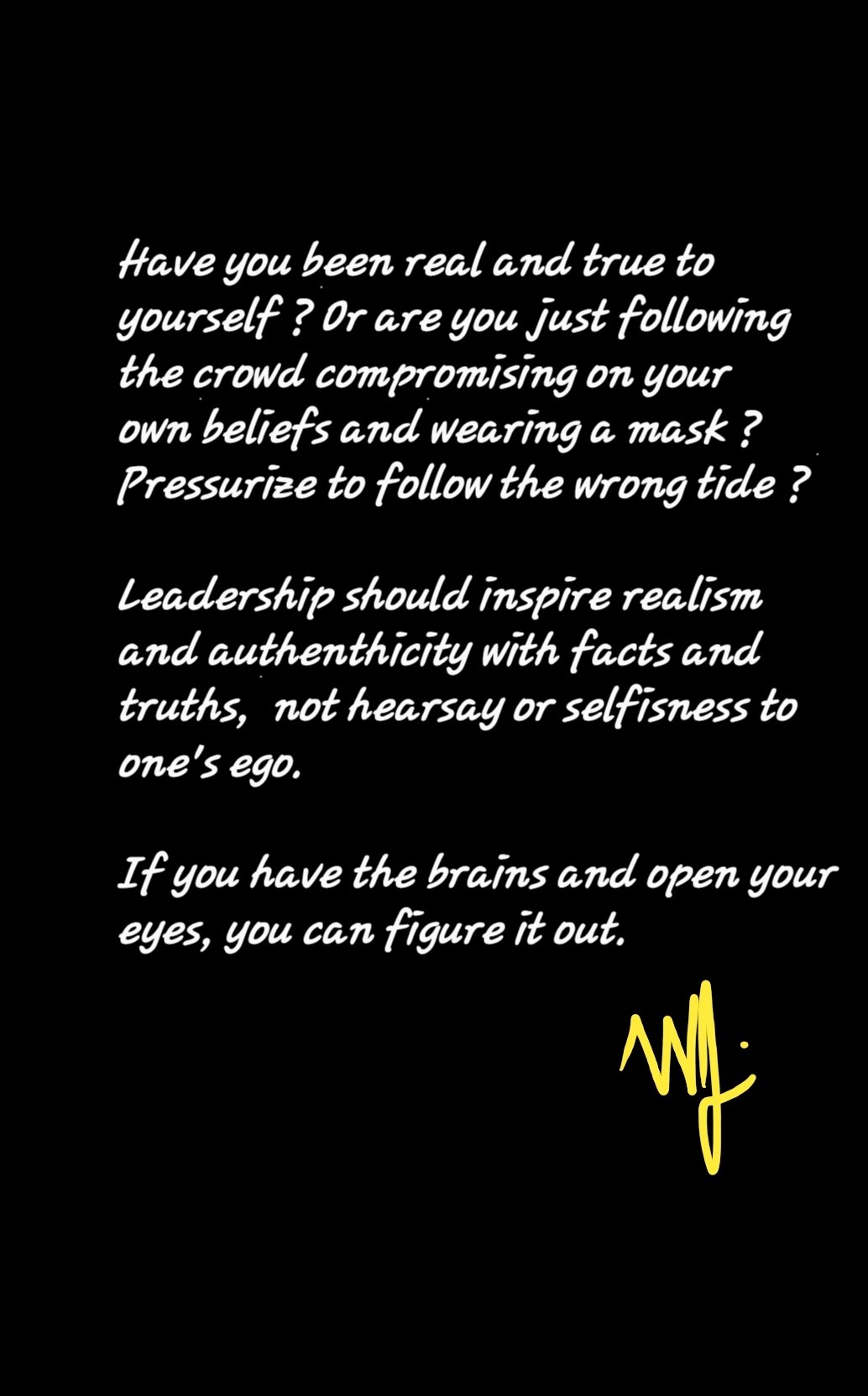 Hence, be AUTHENTIC, be firm, stay on course with your principles. Care for people who genuinely appreciates you and be careful of those wearing a mask.